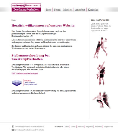 Screenshot der Vereins-Webseite Zweikampfverhalten e.V. (www.zweikampfverhalten.de) aufgenommen am 27.06.2017